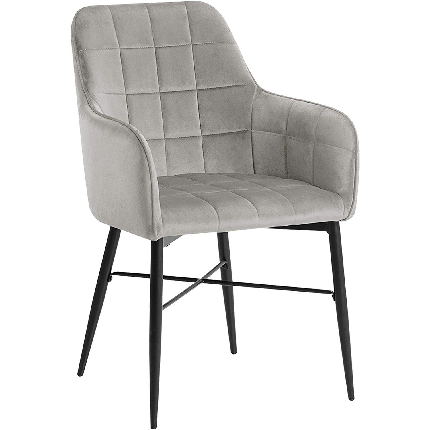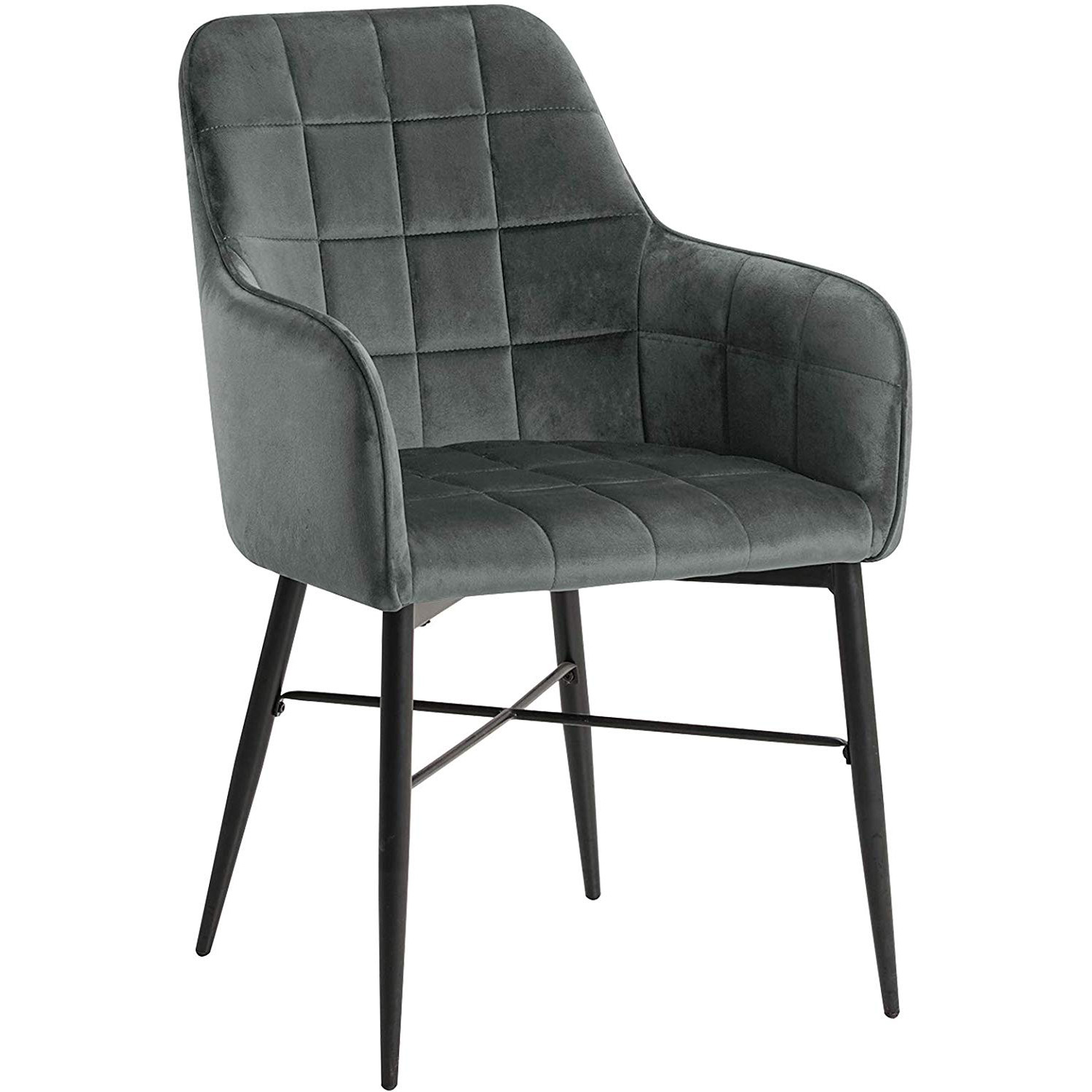 Стілець з підлокітником, оксамитовим сидінням та металевими ніжками BH81 (Сірий)