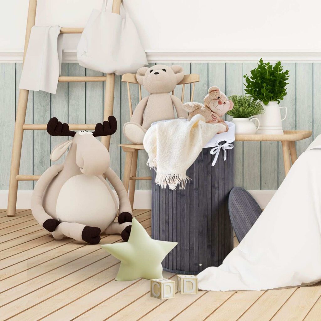 Кошик для білизни має стійкий і водночас легкий корпус з бамбукових рейок. Металеве кільце та дерев’яна основа також забезпечують стійкість. Завдяки своєму природному вигляду, сучасному та округлому кошику для білизни прикрасить будь-яку ванну кімнату, спальню або дитячу кімнату.