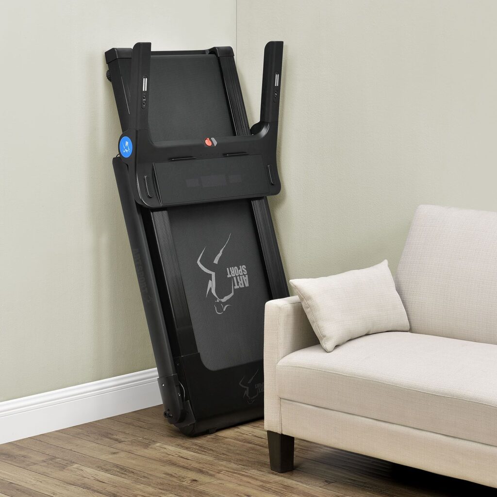 Бігова поверхня розміром 120×45 см пропонує достатньо місця для ходьби, ходьби або бігу. Пристрій може бути завантажений до 110 кг. Тренажер також дуже компактний та забезпечує чудовий комфорт при бігу. Нековзна поверхня забезпечує надійне захоплення під час бігу.