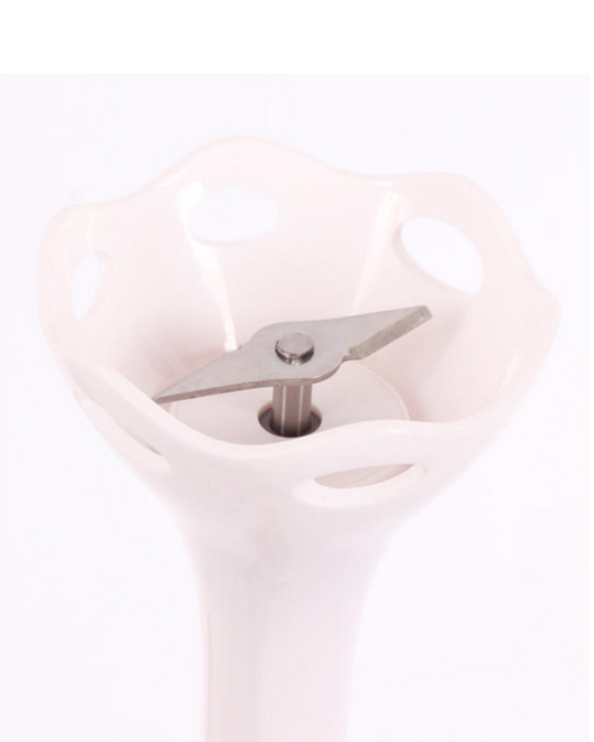 - Комплект складається з блендер (паличка), віночок, подрібнювач, ємність для подрібнювача 650 мл