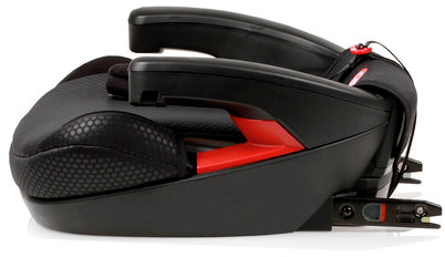 Дитина фіксується у бустері автомобільним ременем безпеки. Інновацією конструкції є спеціальна кліпса, яка служить додатковим блокуванням і одночасно спрямовує для штатного ременя. Крісло піднімає дитину на необхідну висоту для правильності фіксації штатним ременем безпеки.
