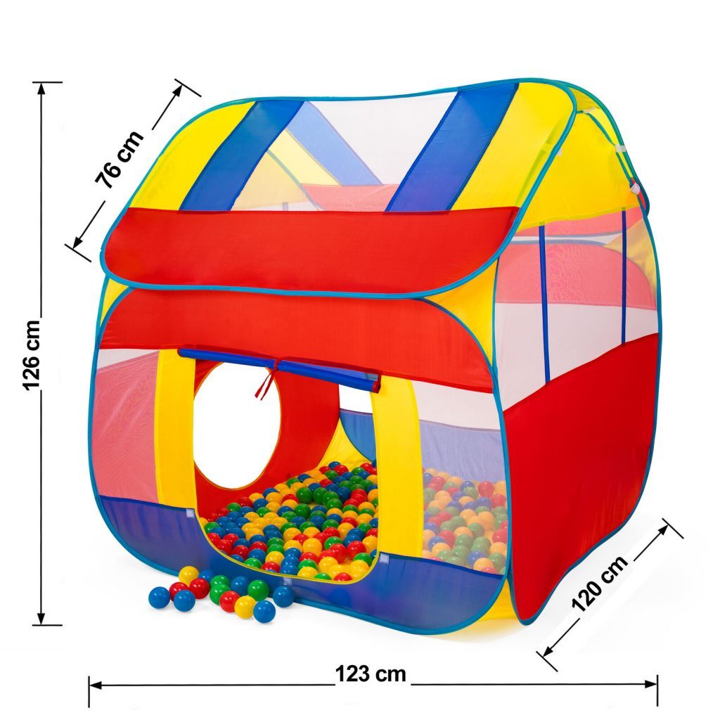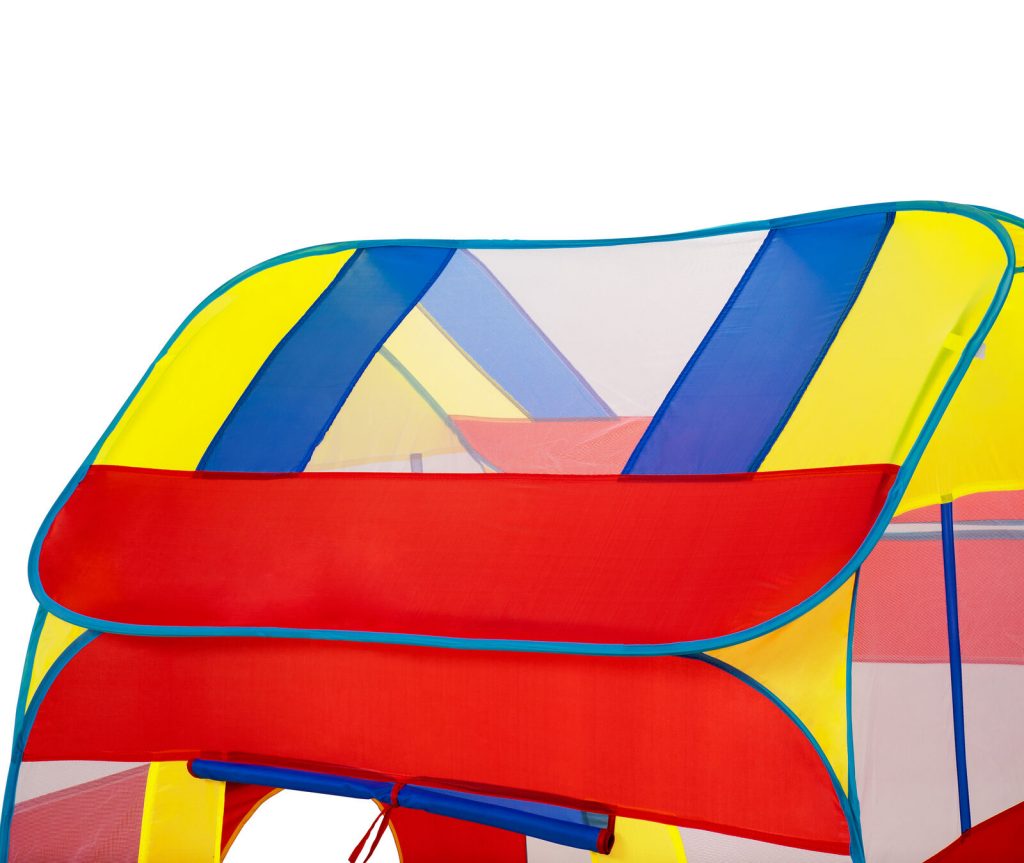 З цим великим дитячим ігровим наметом ваші діти отримають масу задоволення. Ігровий намет має сумку для перенесення, в якій окремі елементи можна прибрати, щоб заощадити місце. Легка тканина поверхні намету забезпечить нормальну циркуляцію повітря усередині.