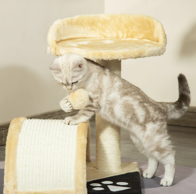 “Задовольніть всі природні інстинкти вашої кішки за допомогою нашої дряпки від PawHut! Завдяки натуральній сизалевій поверхні для дряпання та м’якій плюшевій накладці наше котяче дерево пропонує елегантний і затишний відпочинок для котів. Крім того, у кота є невелика котяча печера для відпочинку та м’яка котяча іграшка для нескінченних розваг.
