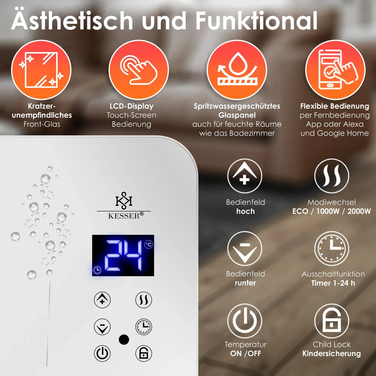 “Електричний скляний обігрівач KESSER 92 x 9 x 38 см Німеччина”
