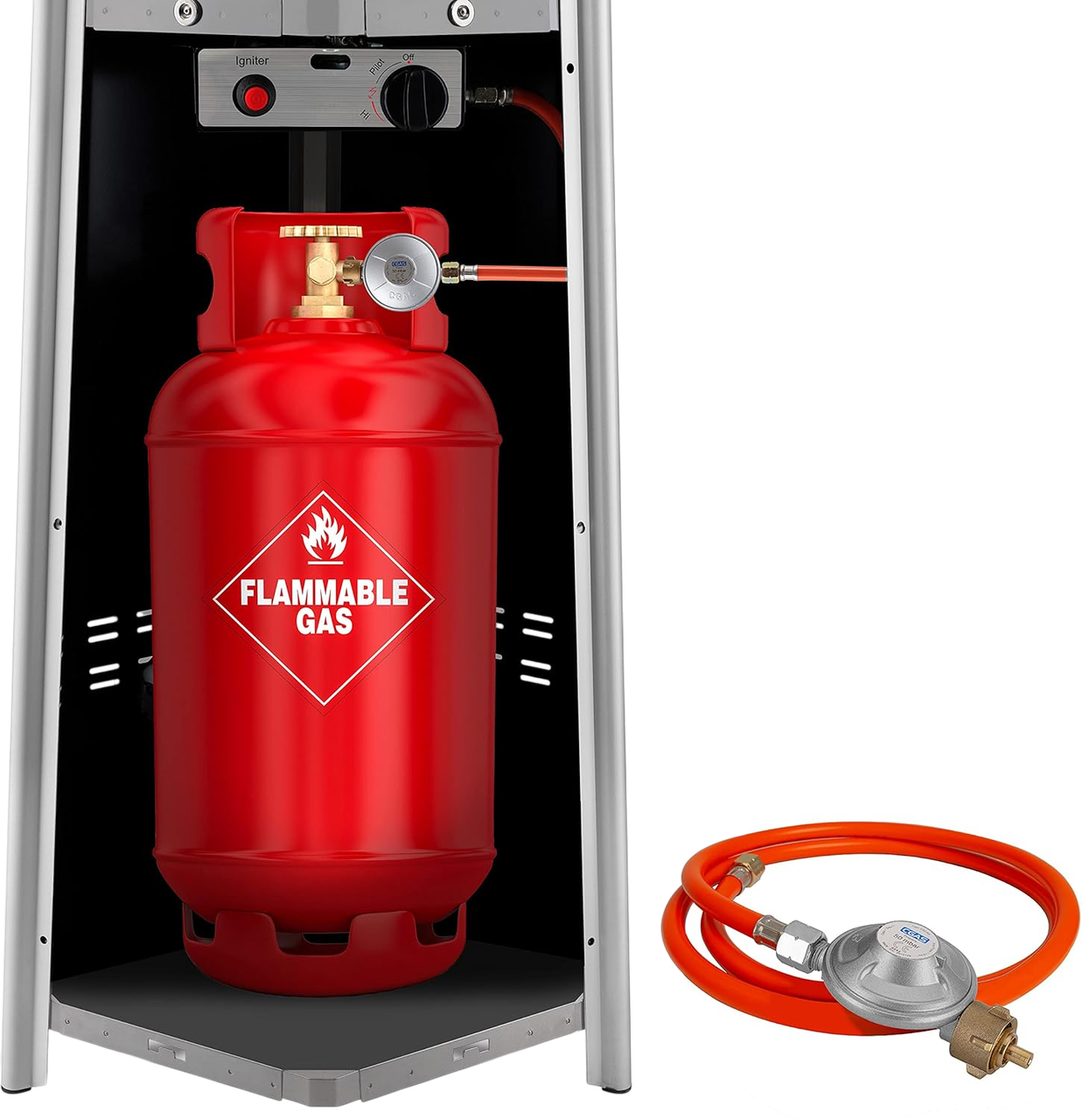 Завдяки тепловій потужності 12,5 кВт газовий обігрівач KESSER ефективно обігріває тераси, альтанки та зони відпочинку. Тепло розподіляється рівномірно, забезпечуючи комфорт навіть у прохолодні вечори. У комплекті постачаються газовий шланг і редуктор тиску для підключення до стандартного газового балона. Потужність легко регулюється за допомогою плавного поворотного регулятора.