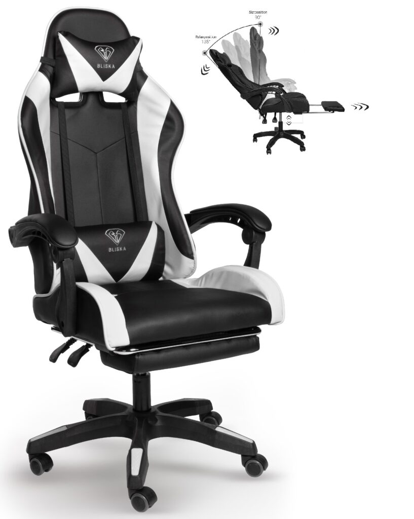 Це крісло, що обертається в спортивному дизайні, зі шкіряною обробкою підходить як як ігрове, так і як зручне крісло для домашнього офісу. Це офісне крісло має гнучкі підлокітники незвичайного дизайну. Спинку крісла можна плавно регулювати. Вбудована висувна підставка для ніг забезпечує найзручніше положення для розслаблення. Зручне крісло, що обертається, можна регулювати по висоті, а так само можна регулювати нахил спинки.