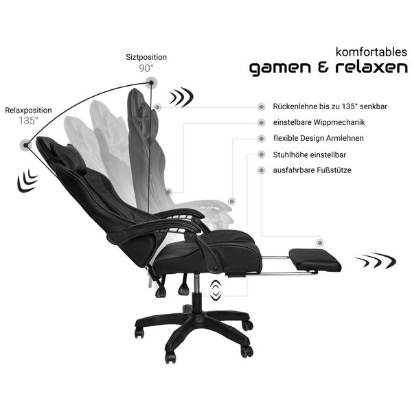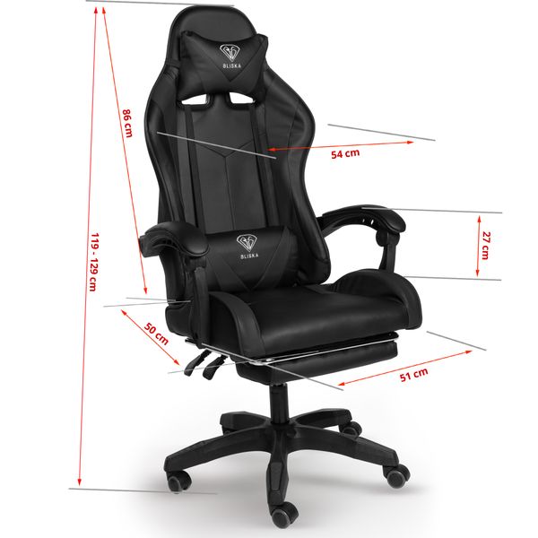 1 “Геймерське крісло ігрове з підставкою для ніг, до 120кг навантаження, з 4D підлокітниками Чорний”