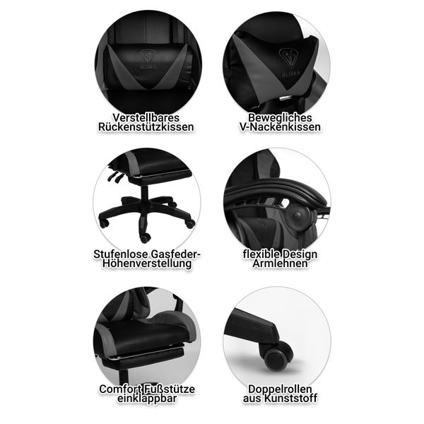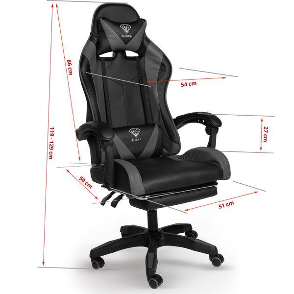 1 “Геймерське крісло ігрове з підставкою для ніг, до 120кг навантаження, з 4D підлокітниками Сірий”