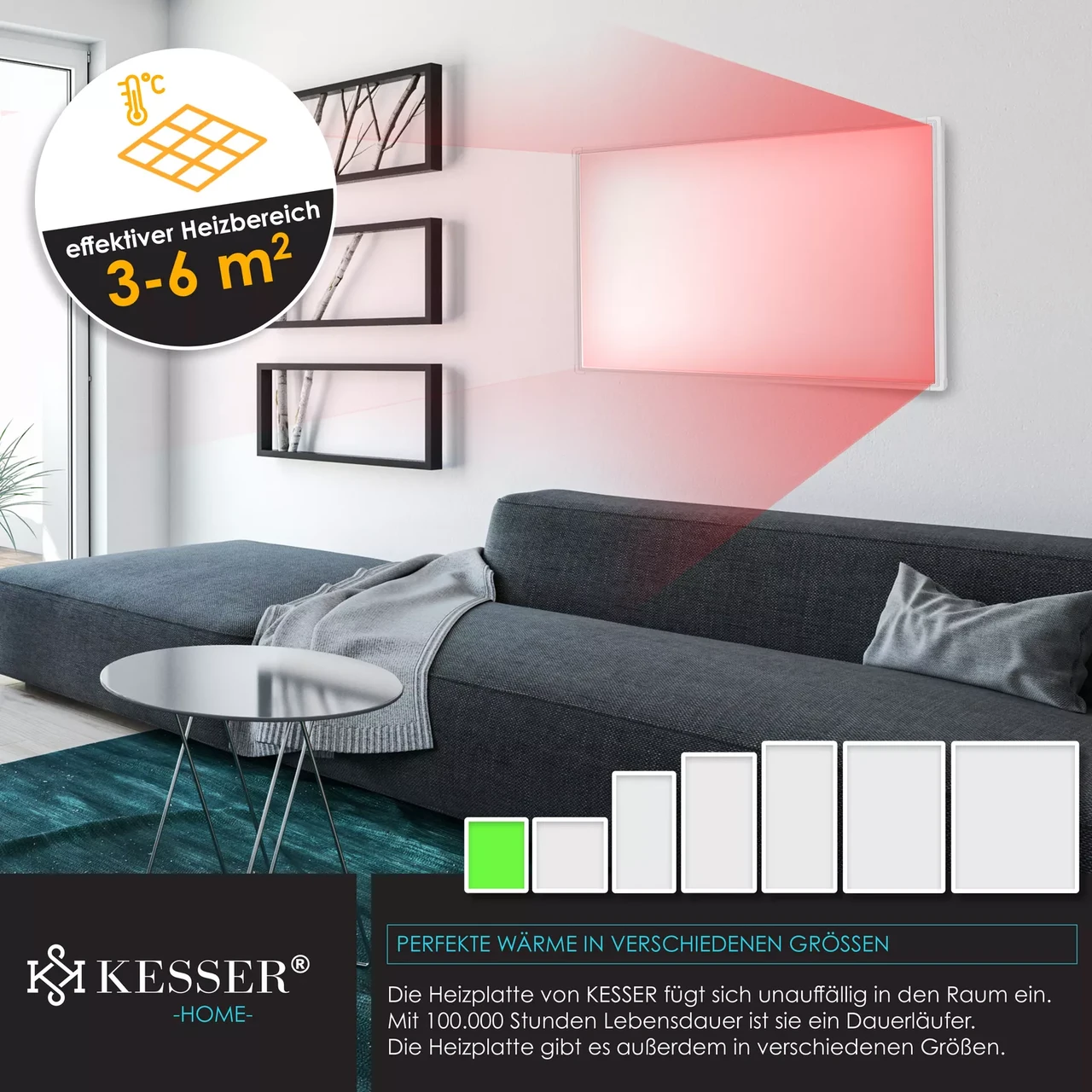 - Інфрачервоний настінний обігрівач 300W KESSER з термостатом Німеччина