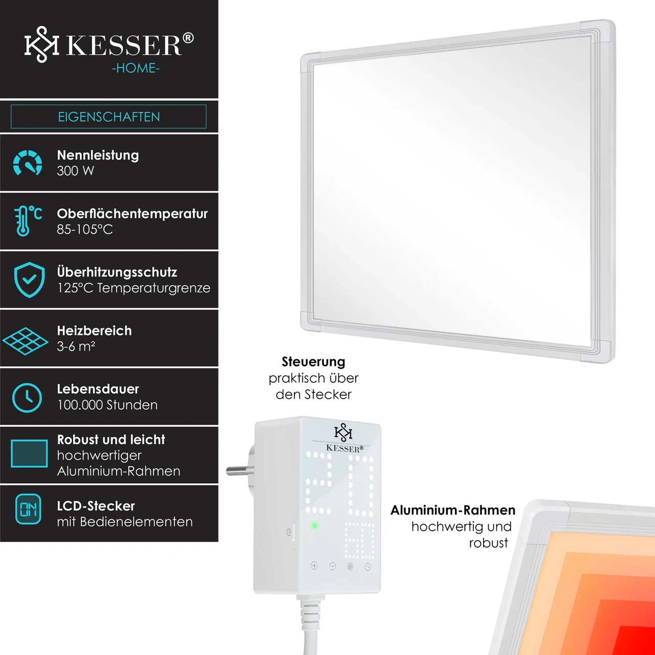 “Інфрачервоний настінний обігрівач 300W KESSER з термостатом Німеччина”