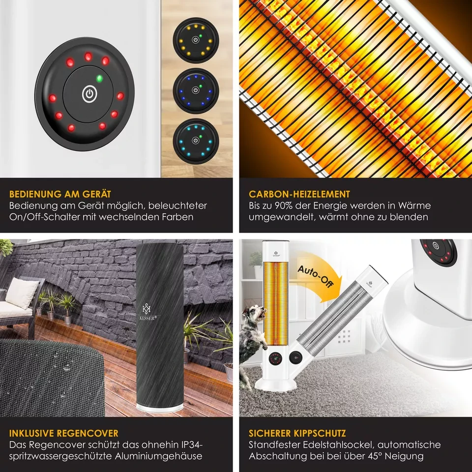 Інфрачервоний обігрівач KESSER – це сучасне рішення для затишку в будь-яку пору року. Усього за 2 секунди він починає випромінювати приємне тепло, яке миттєво поширюється на навколишні тіла, меблі та предмети.