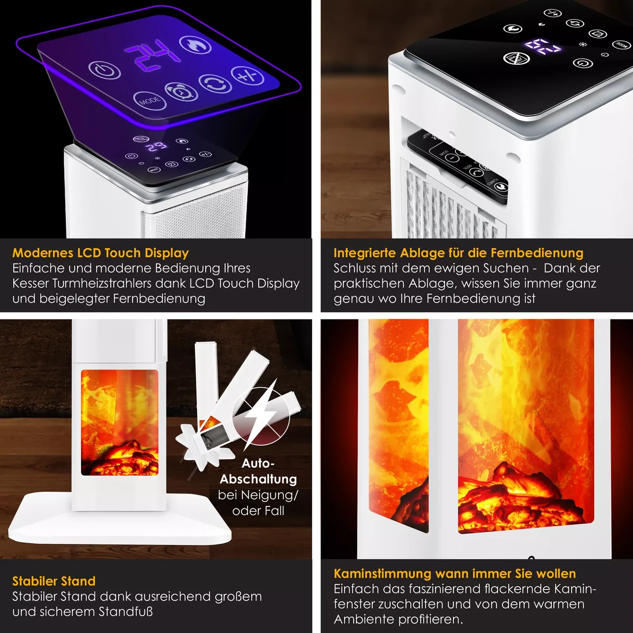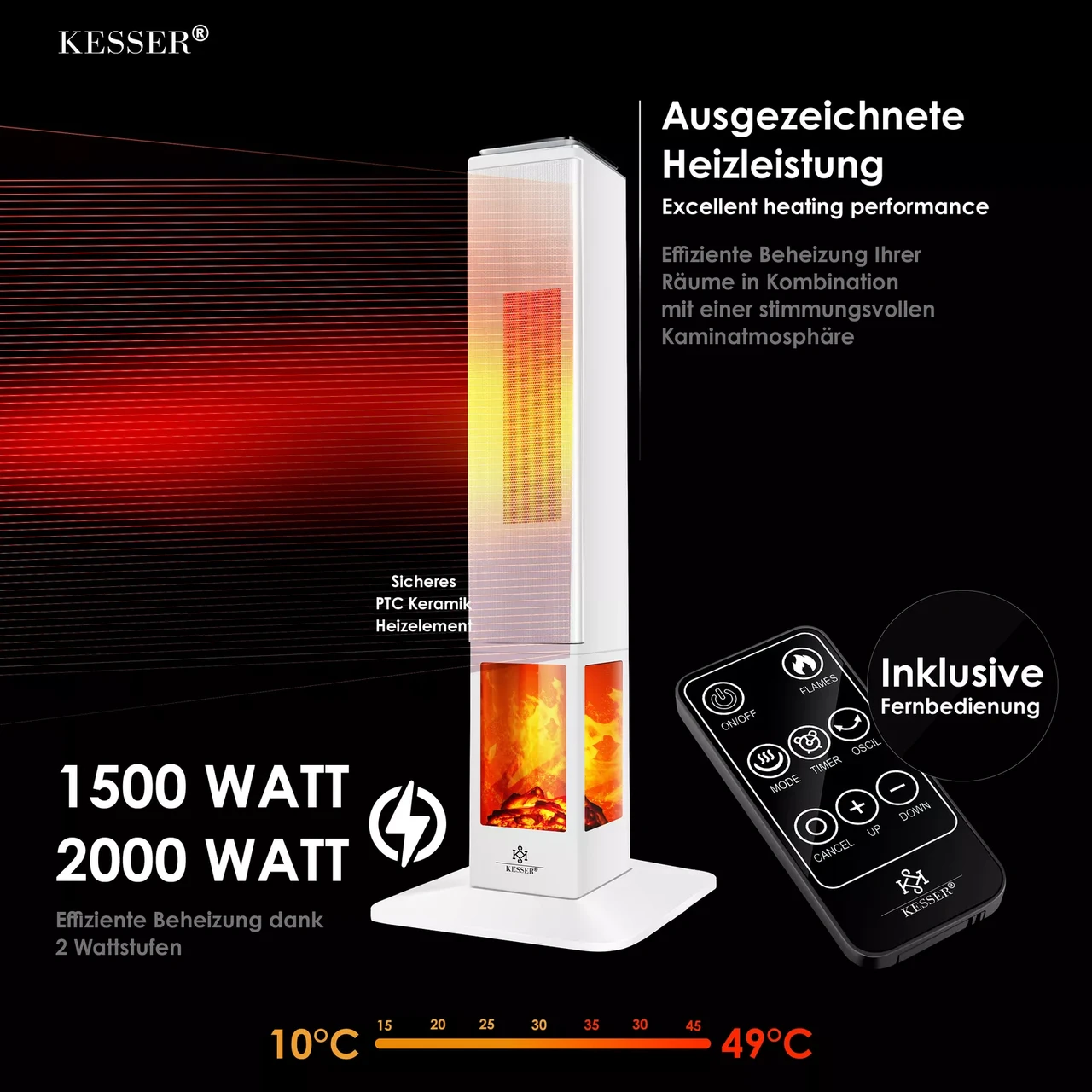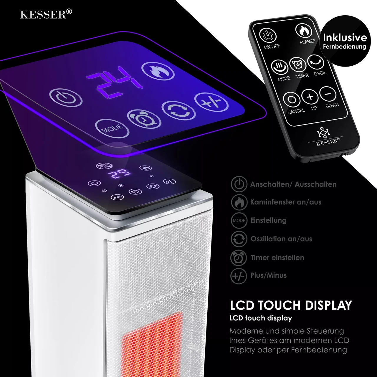 🔥 Інфрачервоний турбонагрівач KESSER з LED-ефектом каміна, сенсорним дисплеєм та пультом ДУ