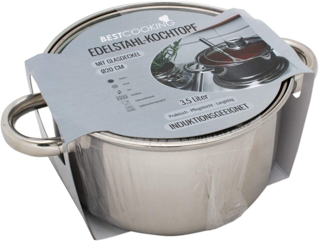 1 каструля Bestcooking із нержавіючої сталі зі скляною кришкою, 3,5л, діаметр 20см.
