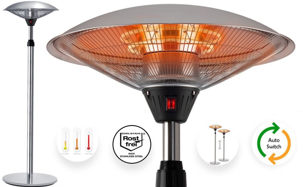 РЕЖИМИ ОПАЛЕННЯ: Завдяки двом індивідуально працюючим галогенним нагрівальним елементам, ви можете встановити відповідні режими нагріву (900 Вт / 1200 Вт / 2100 Вт) за своїм бажанням. Він зберігає тепло – абсолютно безшумний і не має запаху. За допомогою телескопічної ніжки та знімних трубчастих елементів з