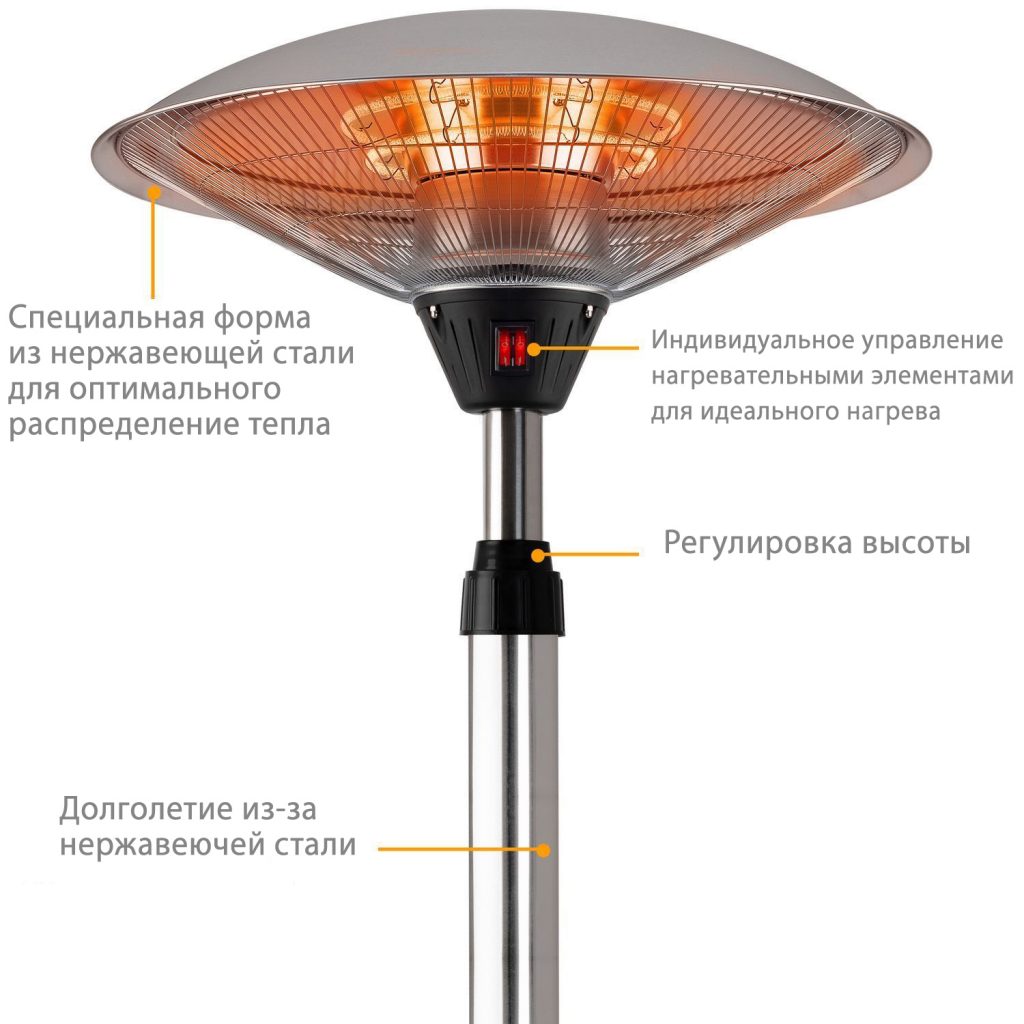 ІНФРАКРАСНИЙ: на відміну від звичайних тепловентиляторів, інфрачервоне випромінювання не тільки нагріває навколишнє повітря, але й передає тепло освітленим людям та об’єктам. М’яке червоне світло забезпечує додатковий затишок.