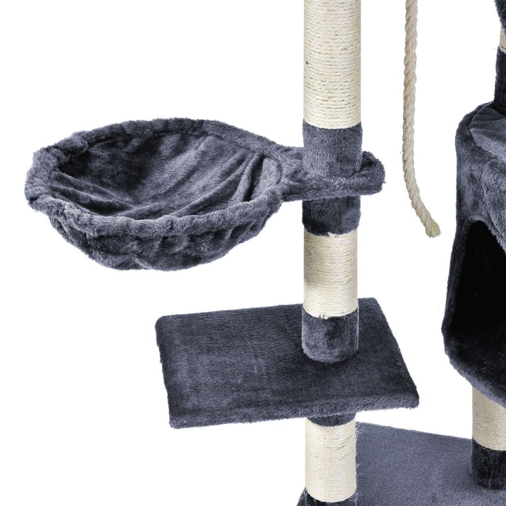 Об’єм поставки:1 × кігтеточка1 × печера1 × ліжко3 × поверхня для лежання1 × ігрова миша1 × ігрова мотузка1 × сходи1 × інструкціяКігтеточка Buffy сірого кольору середньої висоти – ідеальний аксесуар для власників кішок. Завдяки широкому оснащенню він пропонує кішкам безліч можливостей пограти, стрибати, відпочити та точити пазурі. Стовбури, обгорнуті сизалем, служать для догляду за пазурами.