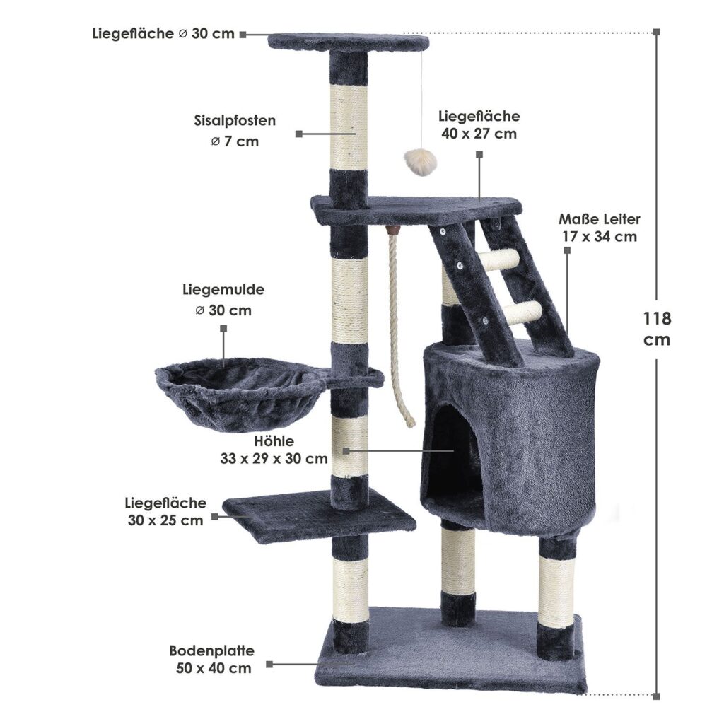 Іграшка для кішок висотою 118 см завдяки своїй компактній конструкції займає мало місця у вашому будинку. Таким чином, це котяче житло гарантовано стане вигідним вкладенням для кожного любителя котів.