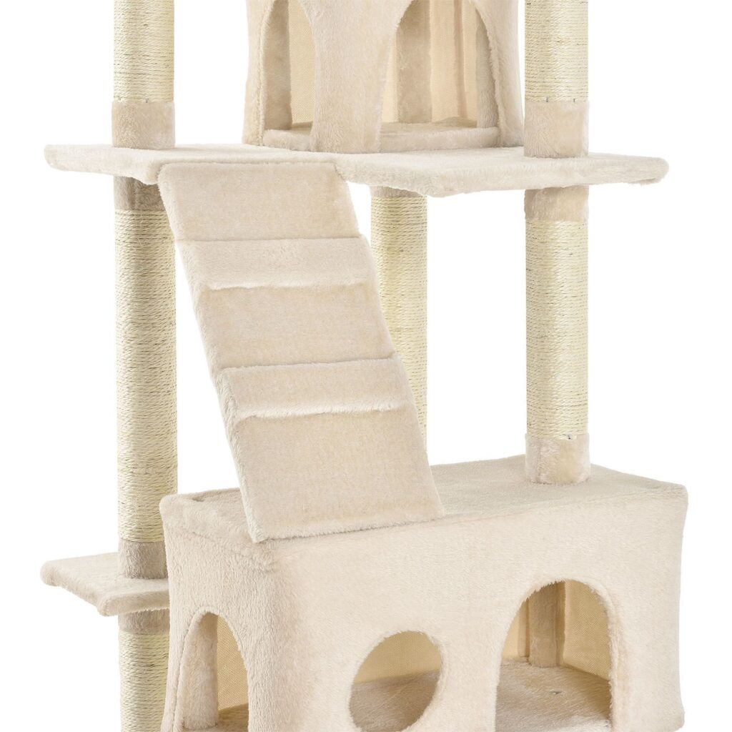 Стовбури товщиною 7 см обгорнуті плюшем та сизалем. Натуральний продукт надзвичайно міцний і забезпечує вашому чотирилапому другові відмінну стійкість до заточування кігтів. Завдяки цьому кігті вашої кішки завжди будуть гострими.