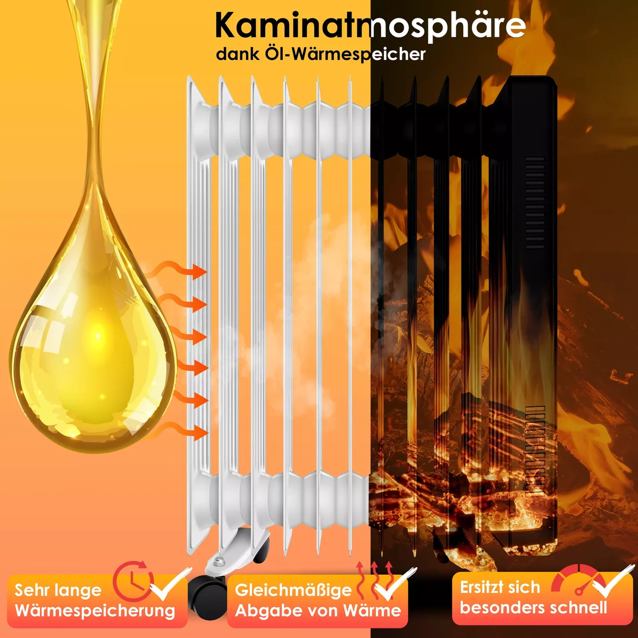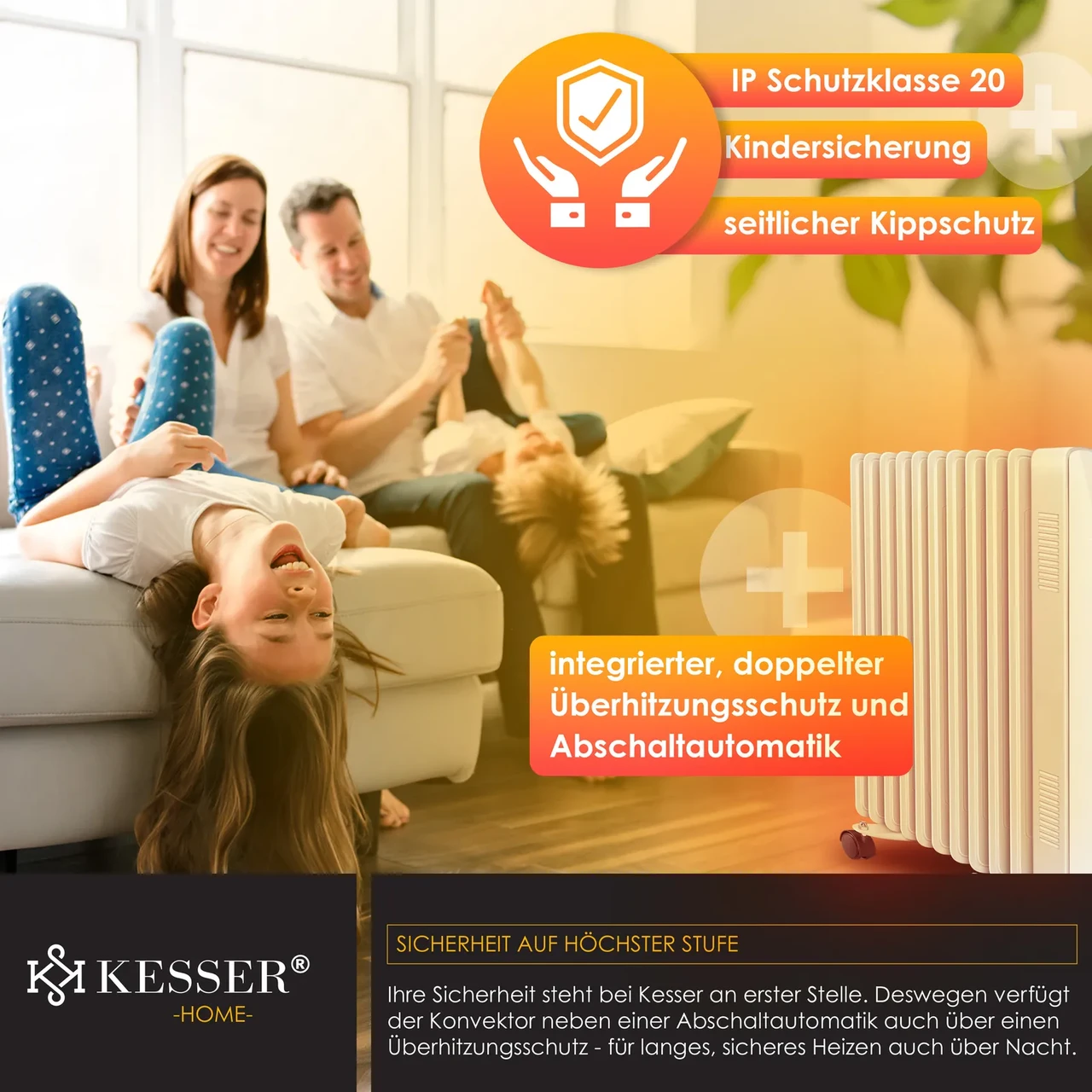 Масляний електричний обігрівач KESSER з дисплеєм 2500 Вт 61 x 49,5 x 23,6см білий Німеччина