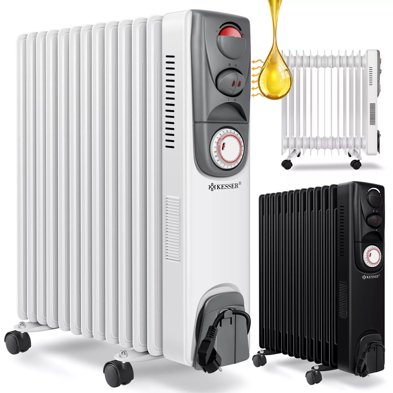 “Масляний електричний обігрівач з таймером KESSER 2500 Вт з 11 ребрами та з вентилятором 2500W Німеччина”