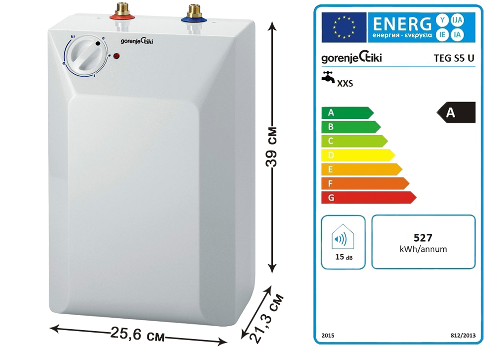 Даний водонагрівач – це економний спосіб забезпечити себе постійною наявністю гарячої води. Його можна встановлювати як у ванній і на кухні, так і в інших місцях, де ви користуєтеся проточною водою, наприклад – у гаражі. Він розрахований на використання невеликої кількості води та дуже компактний, зручно розташується навіть у малогабаритному приміщенні. Корпус водонагрівача виготовлений із пластику, усередині – емальована сталь. Тін, що нагріває воду, виготовлений із міді та стійкий до корозії. На корпусі розташована ручка регулювання температури, яка дозволить не тільки встановити потрібну вам температуру від 15 до 75С, але і вибрати режим захисту від замерзання.