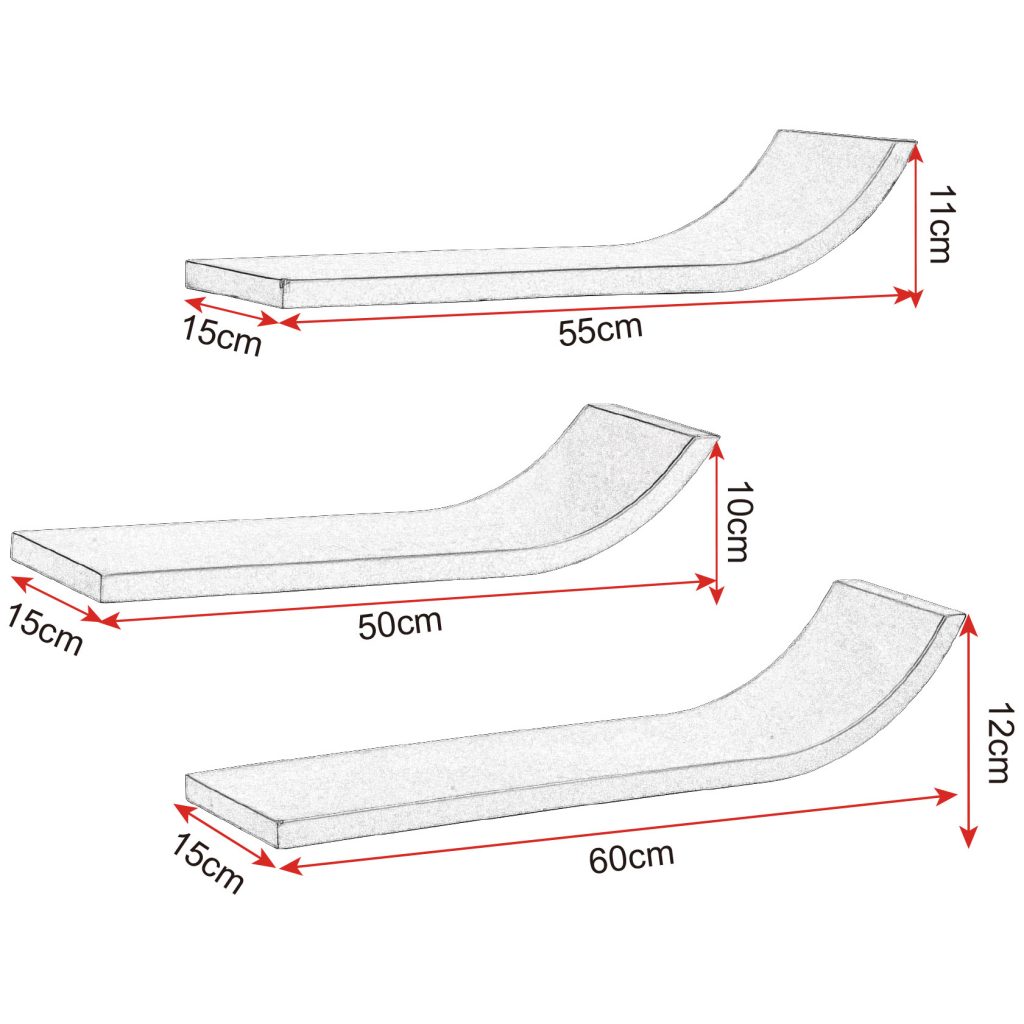 • Розмір (Д х Ш х В): 60 х 15 х 12 см; 55 х 15 х 11 см; 50 х 15 х 10 см