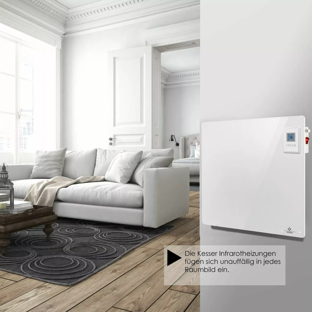 Значна економія енергії через нагрівальні хвилі, які прогрівають всю кімнату. Легко встановити за допомогою монтажних аксесуарів та просто вичистити. Також є вбудований захист від перегріву. Підходить для будь-якої кімнати – як настінне опалення, так і стельове опалення.