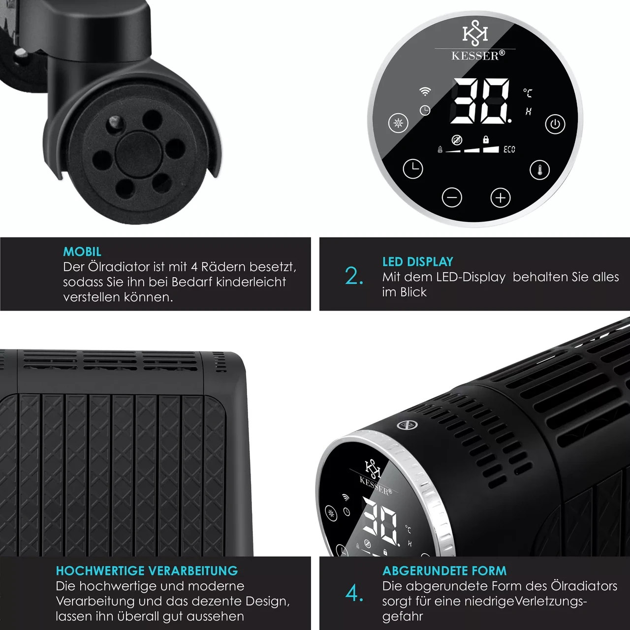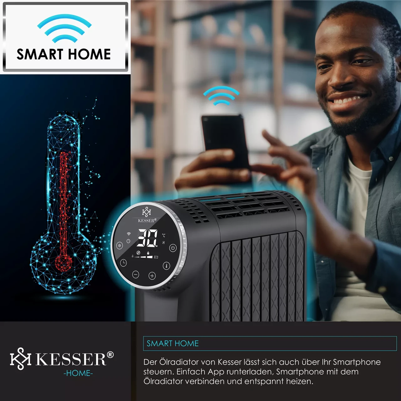 🔥 Масляний обігрівач KESSER 2500 Вт з WiFi, LED-дисплеєм, термостатом та таймером