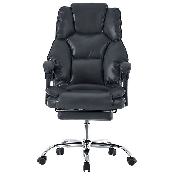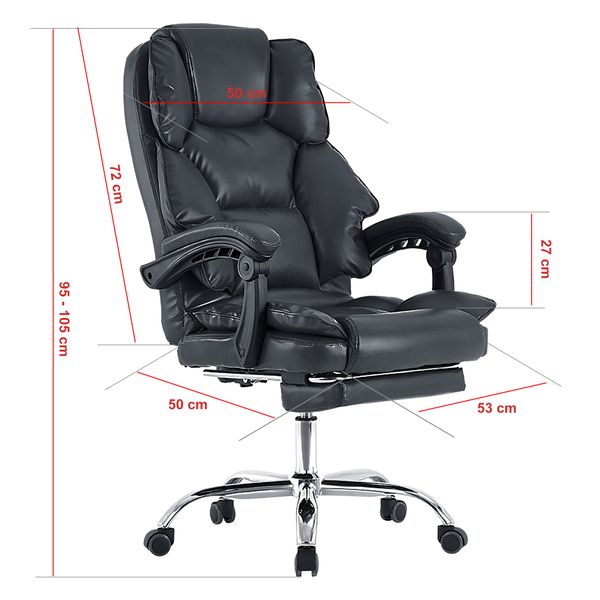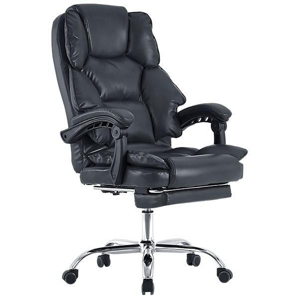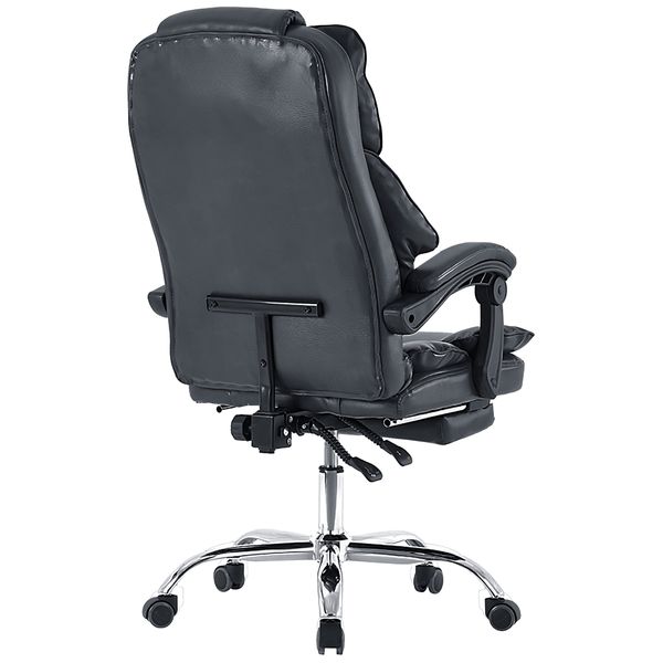 Гнучке крісло з елегантним дизайном, що імітує шкіру. Це офісне крісло оснащене м’якими гнучкими триточковими підлокітниками. Його можна встановити розслаблююче положення, а підлокітники адаптуються до цього положення. Для максимального розслаблення м’яку підставку для ніг можна вийняти. Крісло, що обертається, можна регулювати по висоті, а так само можна регулювати нахил спинки.