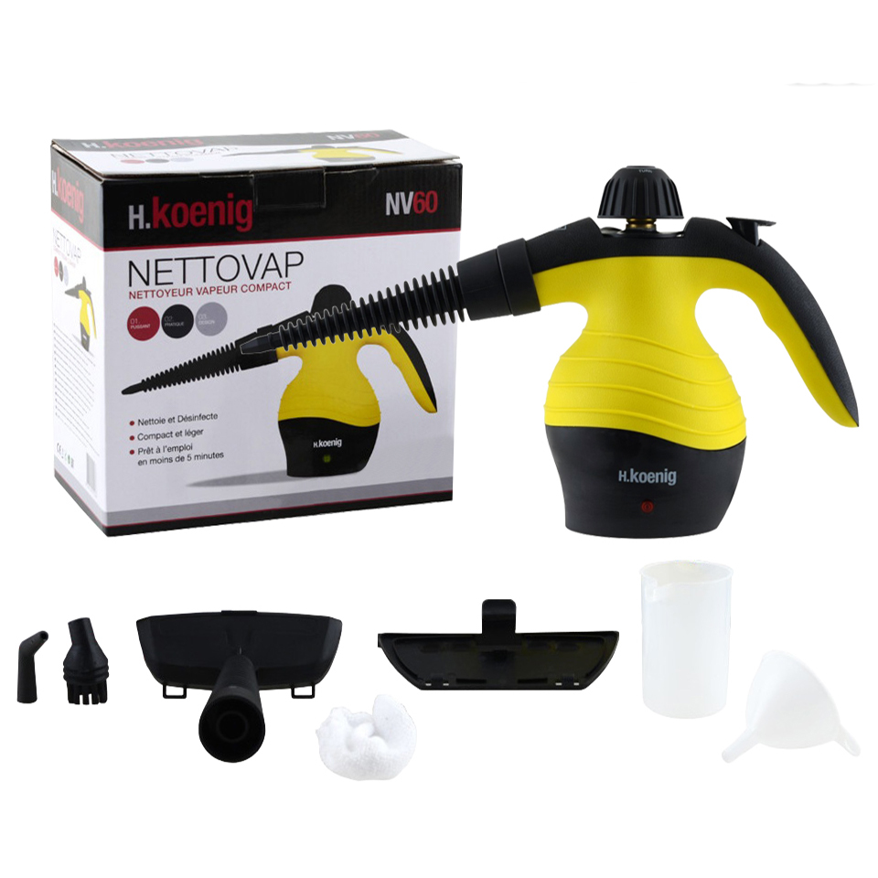 Цей пароочисник німецької якості допоможе утримувати в чистоті не тільки будинок, а й гараж, його вміст, побутові господарські предмети, садовий інвентар, вікна і т.д. З його допомогою ви також зможете очистити килимові покриття, оббивку, стіни та інші об’єкти, проблематичні в очищенні. Пароочисник H.KOENIG NV60 не тільки чистить, він ще й дезінфікує та знежирює при температурі пари 100С. За рахунок безлічі насадок дана модель є універсальною і підходить для обробки всіх поверхонь. Нагрівання холодної води до стану пари досягається за 5-8 хвилин. Щоб прискорити цей процес, достатньо налити в резервуар теплу воду.