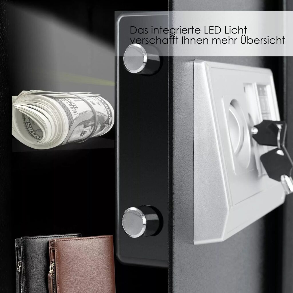 Цей невеликий, але дуже надійний сейф стане гідною інвестицією в безпеку нажитих вами матеріальних цінностей. Його розміри дозволяють зберігати там не тільки готівку, а й безліч інших цінних речей. Для зберігання крихких предметів передбачено м’який флісовий шар на нижній полиці.