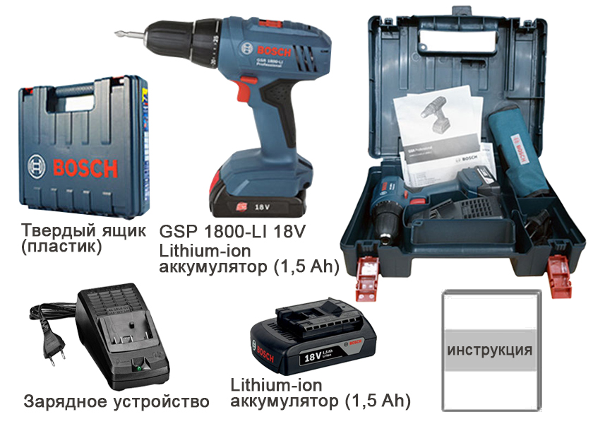 - Викрутка Bosch GSR 1800-Li 1.5 Ah