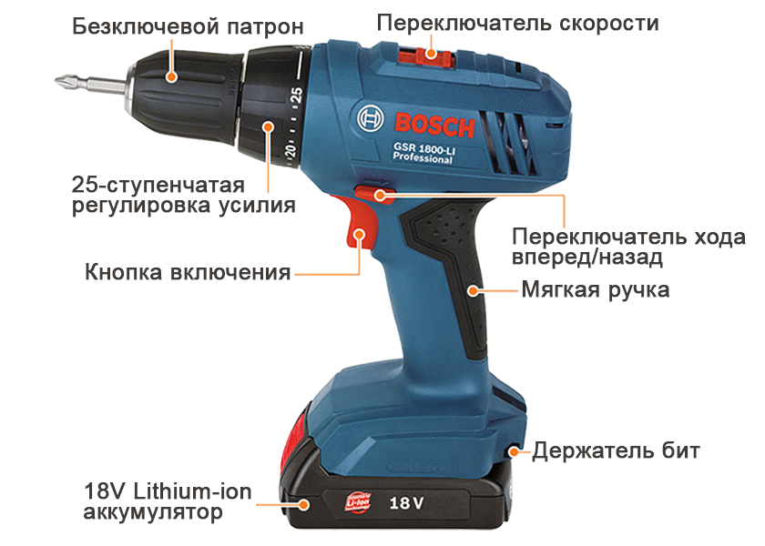 Технічні характеристики шуруповерту Bosch GSR 1800-Li 1.5 Ач