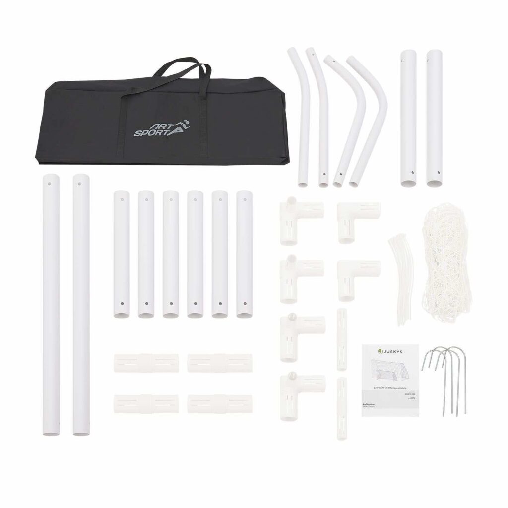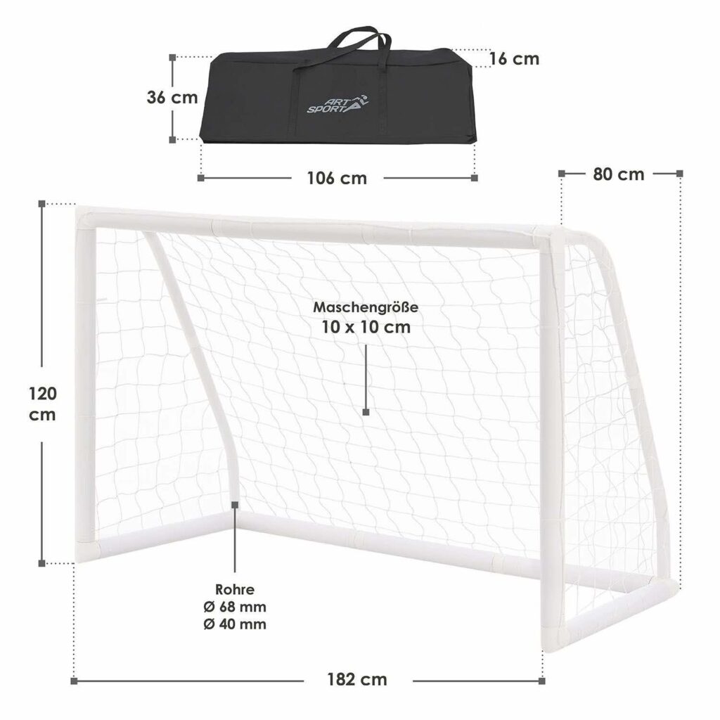 На додачу до рами воріт цей великий набір також включає білу сітку із стійкого до атмосферних впливів поліуретану та практичну сумку для перенесення. Тепер не вистачає лише футболу і ніщо не заважає веселитися.