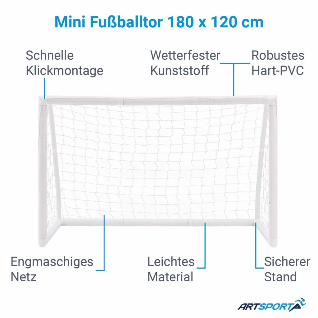 Забивайте голи як професіонал у власному саду – ця мрія стала можливою завдяки футбольним воротам розміром 180 x 120 см із практичною системою засувки. Рама воріт, виготовлена з високоякісного жорсткого ПВХ, стійка до ударів у перекладину та штангу, а також напрочуд легка. Наземні анкери, що входять до комплекту постачання, забезпечують надійну опору навіть за сильного удару або вітру. Продумана система вставок дозволяє швидко збирати та розбирати ворота. Завдяки практичній сумці ви можете переносити набір однією рукою. Міцна сітка із стійкого до атмосферних впливів поліуретану забезпечує професійний вигляд.