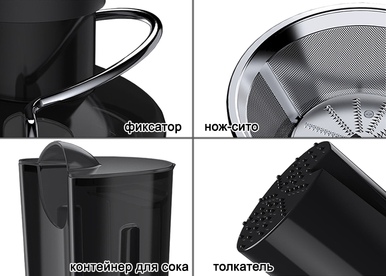 – Соковитискач виконаний з високоякісної нержавіючої сталі.