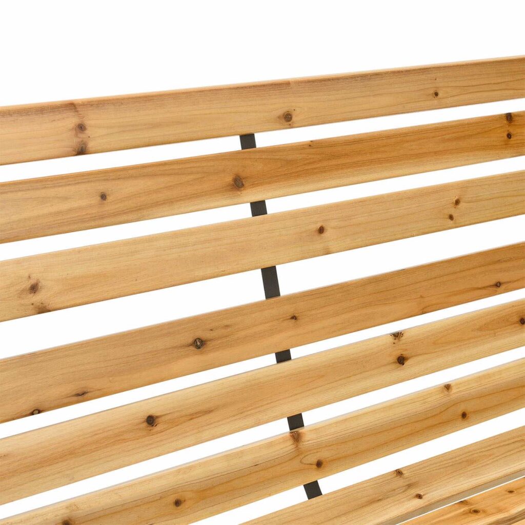 Класична двомісна лава сяє своєю простотою без надмірностей. Акценти розставлені вигнутими підлокітниками елегантного антрацитового кольору. Предмет меблів випромінює приємне тепло та особливу чарівність завдяки натуральному кольору дерева. Затишний вигляд запрошує вас затриматися, розслабитися або почитати.