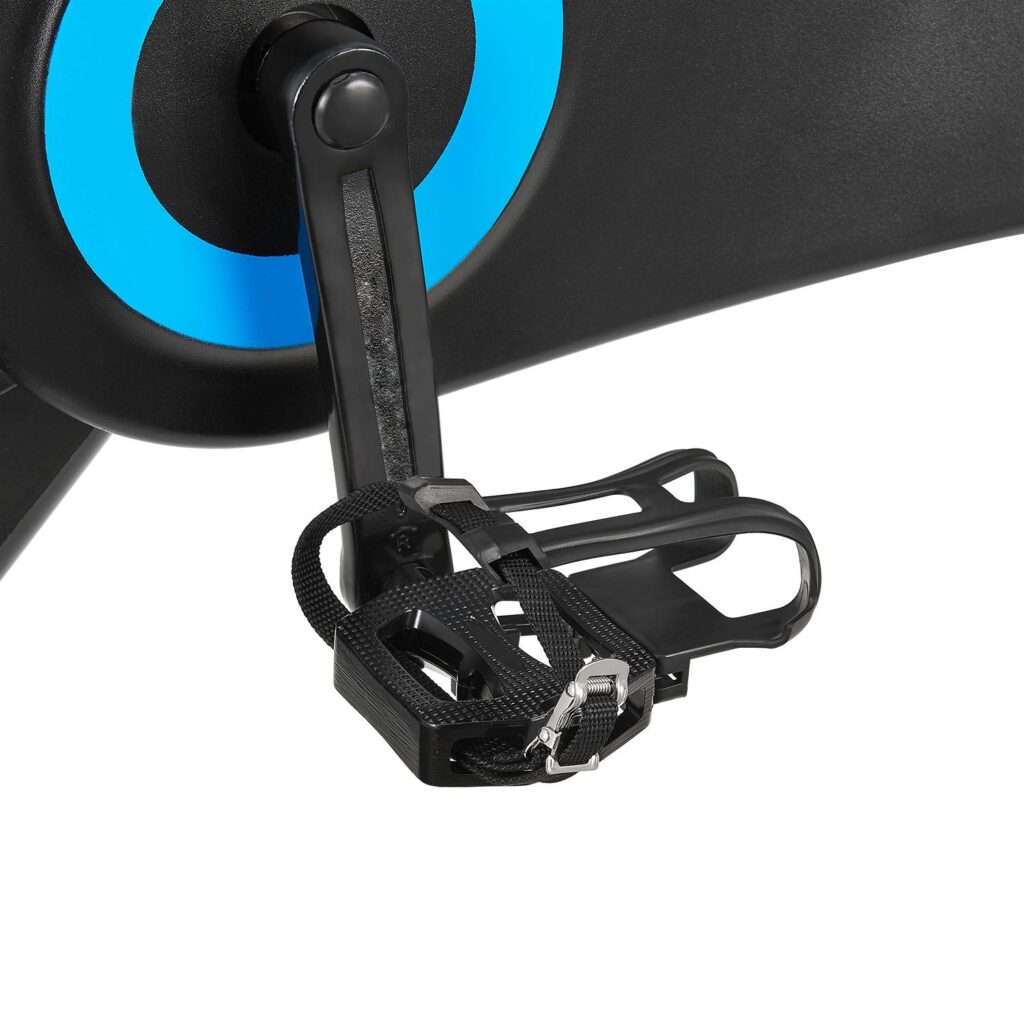 Підніміть свої тренування на витривалість нового рівня. Велотренажер відрізняється стабільними алюмінієвими педалями. Вони забезпечують надійну фіксацію навіть при високих навантаженнях та на високих швидкостях. Утримуючі кошики запобігають ковзанню ніг. Налаштуйте педалі по нозі за допомогою ременів.