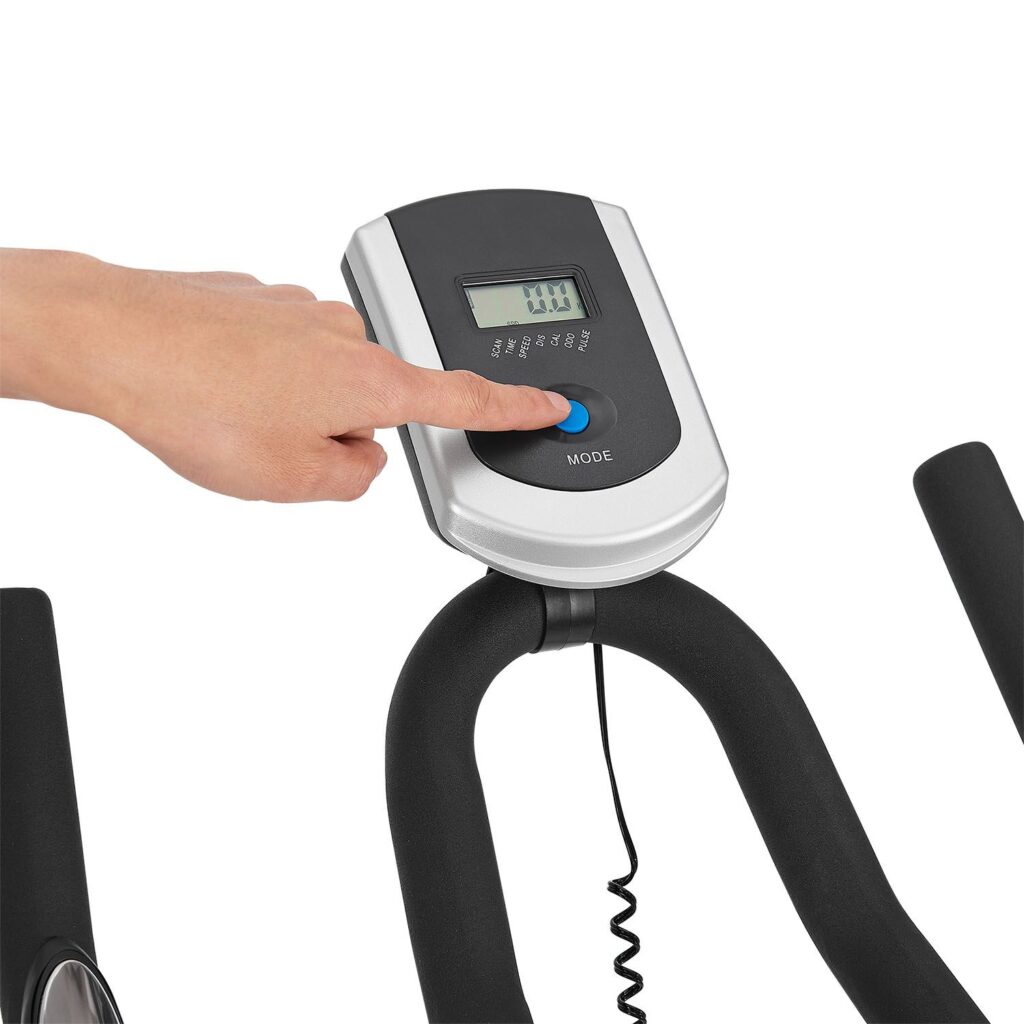 Бажаєте мати огляд найважливіших параметрів під час тренування? На екрані ви відстежуєте тривалість тренування, швидкість, дистанцію, витрати калорій та пульс. Ви можете зручно керувати дисплеєм за допомогою великої кнопки. Комп’ютер працює від батарейок типу ААА.