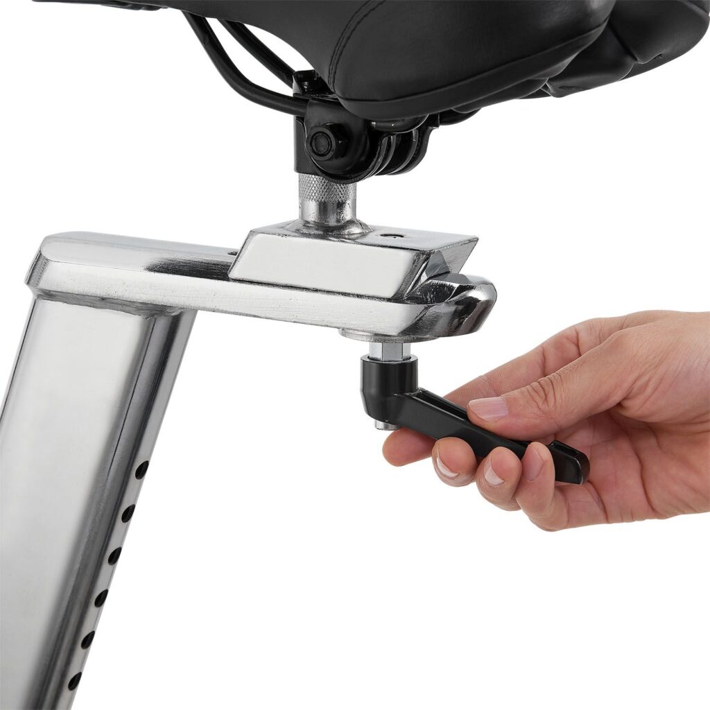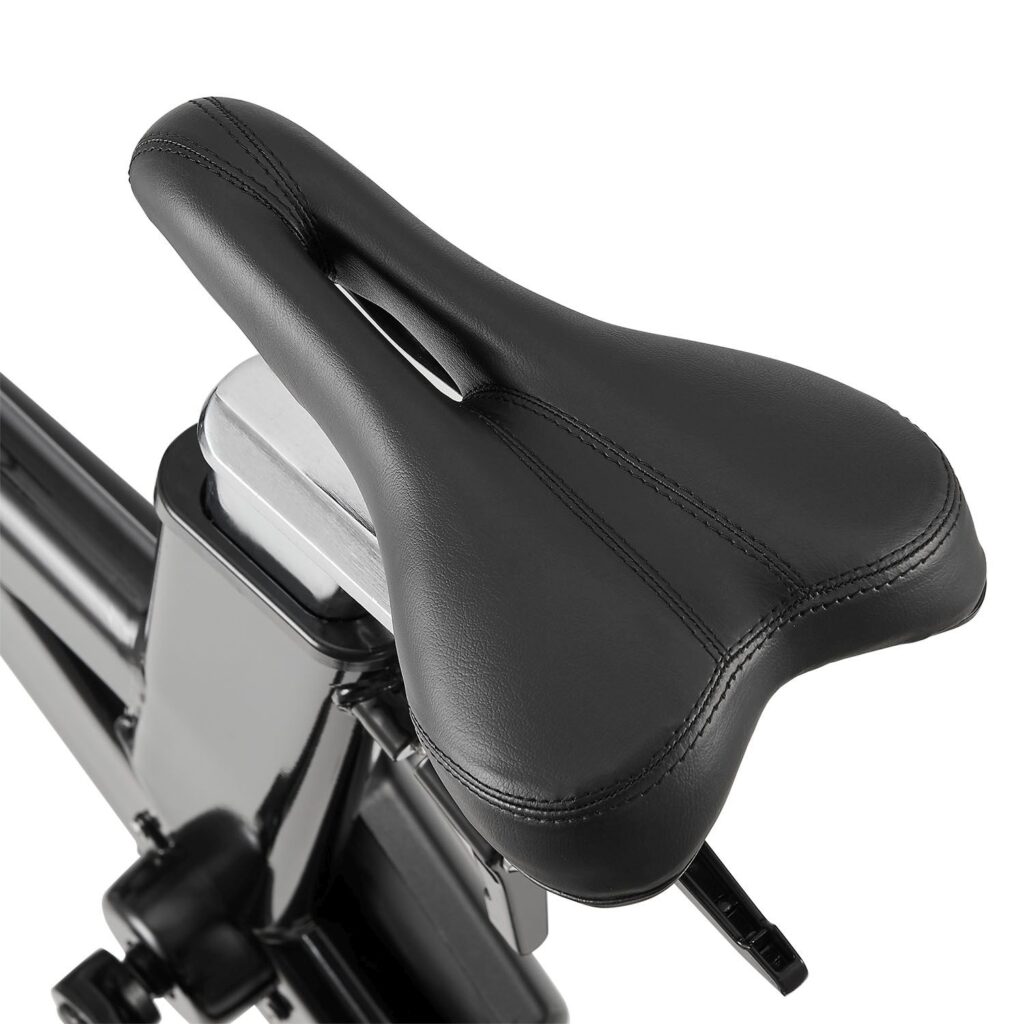 Високоякісне та ергономічне сідло з м’якою підкладкою забезпечує оптимальний комфорт під час кардіотренувань. Висоту та довжину сидіння можна відрегулювати, щоб забезпечити правильне положення сидячи. Велосипед підходить для людей зростом до 2 м та вагою до 150 кг.