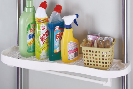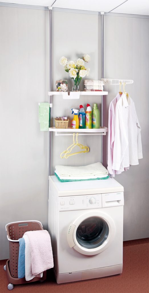 • Сучасна полиця для ванної кімнати з двома безступінчасто регульованими по висоті телескопічними штангами.