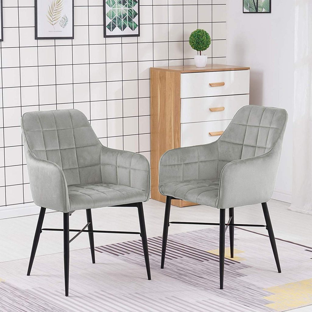 “Стілець з підлокітником, оксамитовим сидінням та металевими ніжками BH81 (Сірий)”