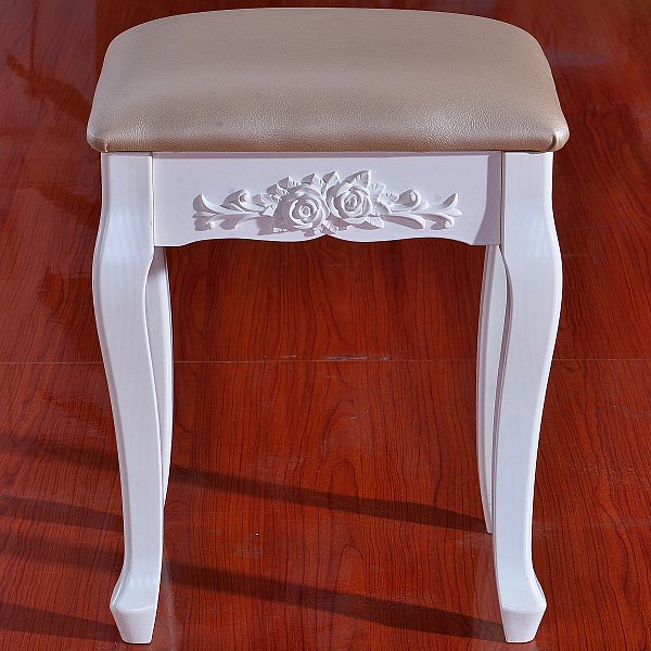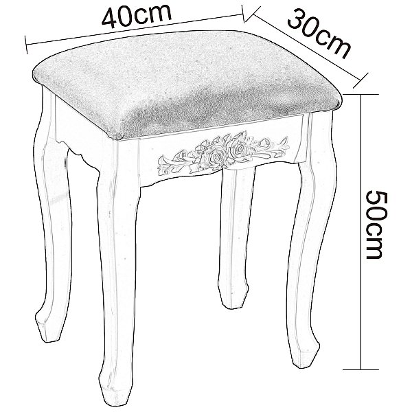 Наш продукт приваблює з погляду дизайну та якості. Першокласний матеріал МДФ та пов’язана з цим довговічна конструкція цього стільця гарантує довгий строк служби. На додаток до свого гарного дизайну, косметичний стілець надзвичайно практичний. Всі елементи виготовлені із МДФ та ручної роботи. Біла обробка надає стільцю сучасний, елегантний та світлий вигляд. Табурет добре обтягнутий і легко чиститься вологою ганчіркою. Цей стілець створює у вашій вітальні романтичну та неповторну атмосферу заміського будинку.