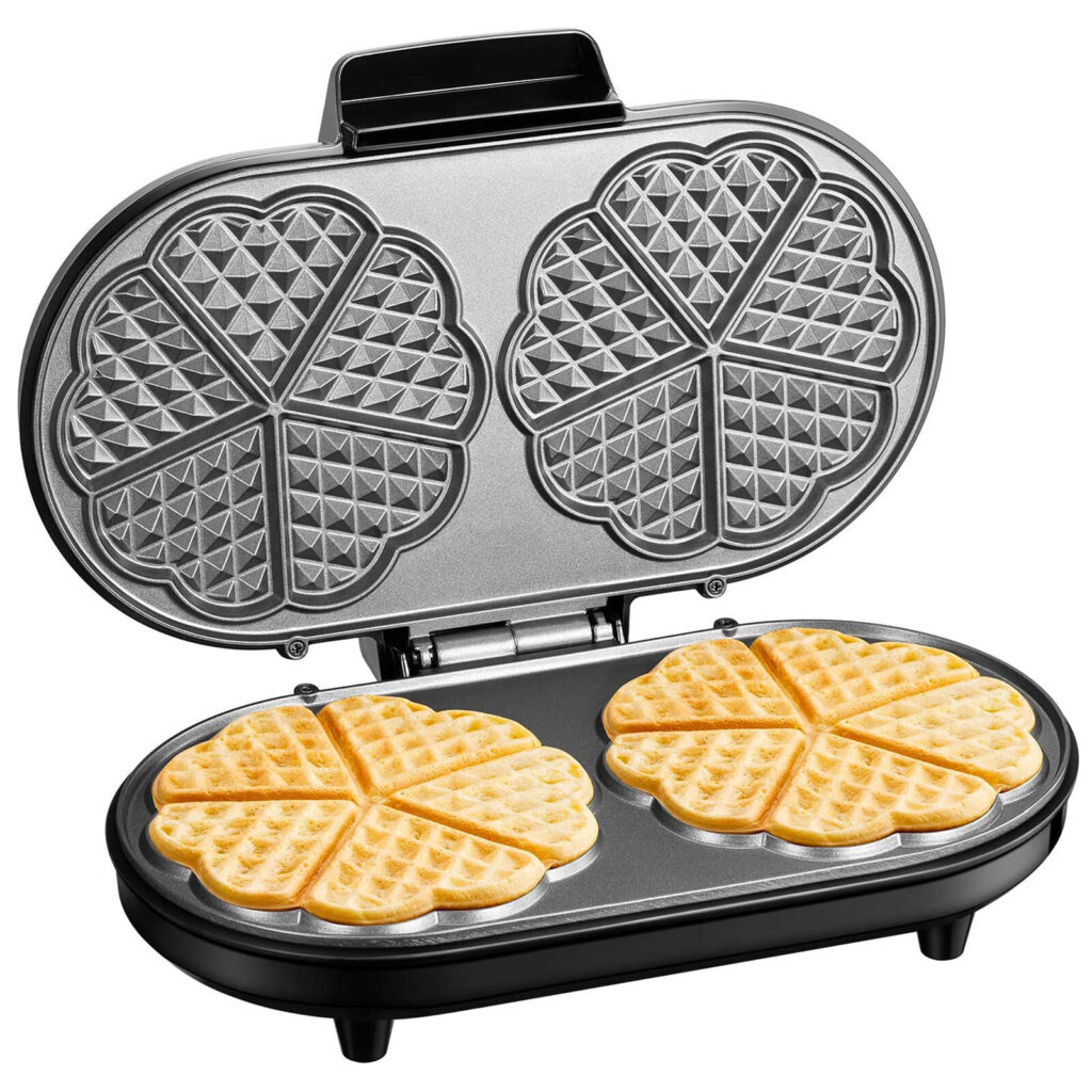 Ця вафельниця має антипригарне покриття, що дозволяє легко видаляти забруднення. Завдяки ковзанням ніжок вафельниця завжди залишається на місці. Температуру можна встановити за допомогою контролера. Завдяки потужності 1200 Вт вафельниця дуже швидко нагрівається. Індикатори підкажуть вам, коли він буде готовим.