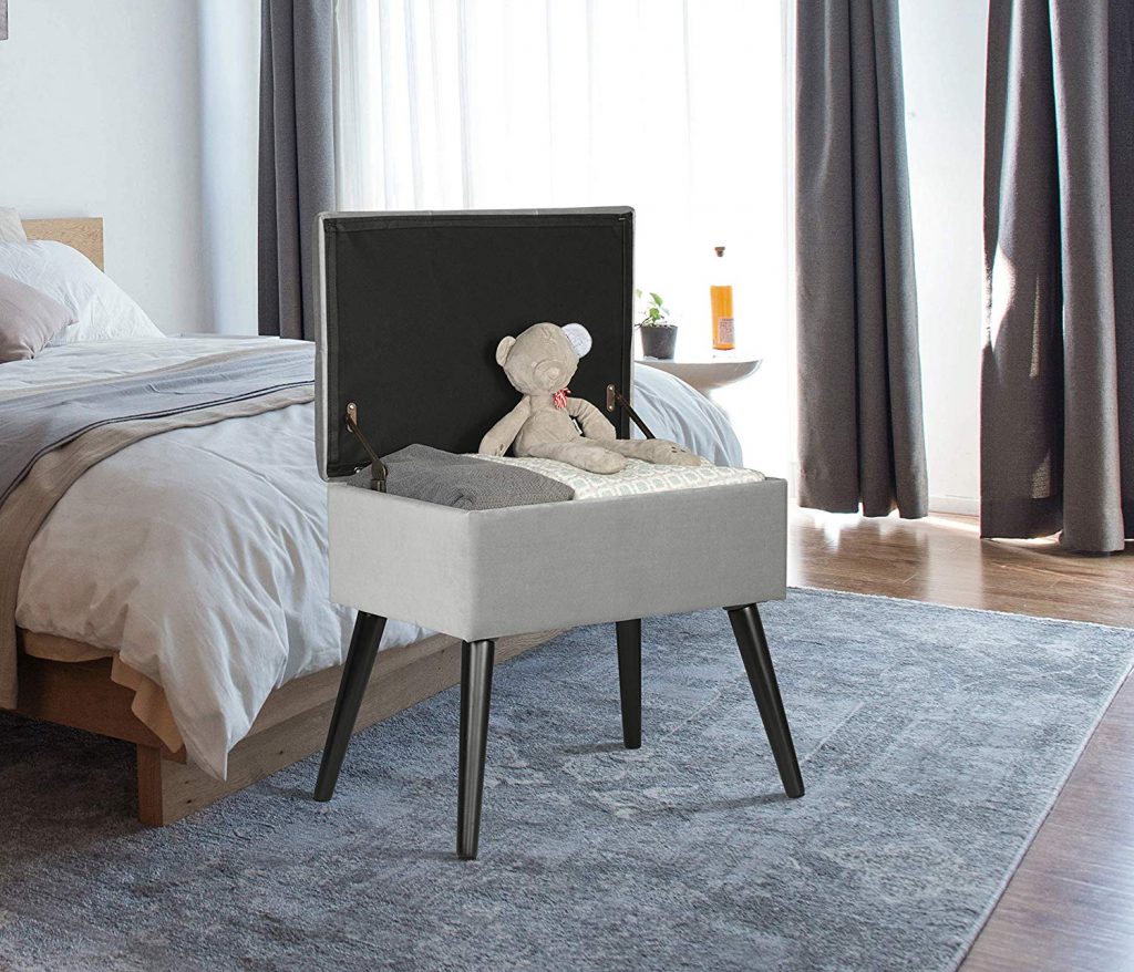 “Оксамитовий табурет з місцем для зберігання SH52 (Сірий)Оксамитовий табурет з місцем для зберігання SH52 (Сірий)”