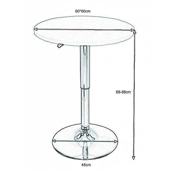 Наш продукт приваблює з погляду дизайну та якості. За допомогою гідравлічної газової пружини можна відрегулювати висоту столика. Цей барний стіл легко пристосовується до потреб, будь то для вашого власного бару, для кухні або