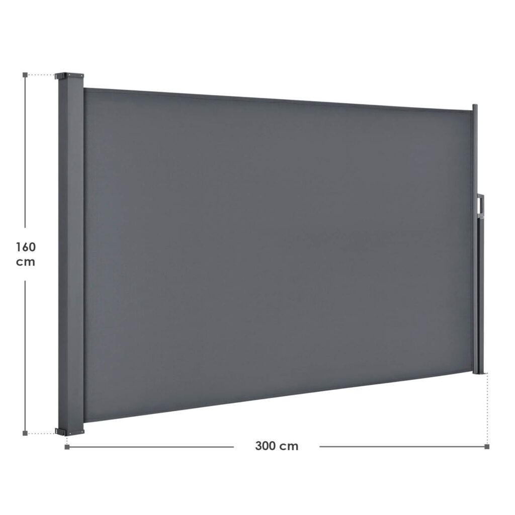 Поскольку боковая маркиза сворачивается в кассету, вы можете просто растянуть ткань до нужной вам длины. Это дает вам возможность настроить тент в соответствии с вашими потребностями, чтобы защитить свой внутренний дворик или сад от солнца и ветра. В целом современная перегородка имеет высоту 1,60 м и максимальную длину 3 м.