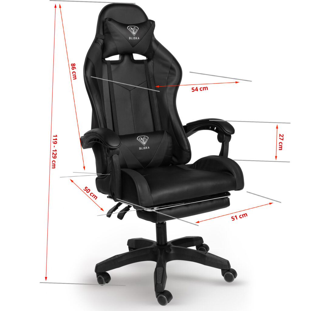 Габарити 84 × 32 × 64,5 см Це крісло, що обертається в спортивному дизайні, зі шкіряною обробкою підходить як в якості ігрового, так і в якості зручного крісла для домашнього офісу. Це офісне крісло має гнучкі підлокітники незвичайного дизайну. Спинку крісла можна плавно регулювати. Вбудована висувна підставка для ніг забезпечує найзручніше положення для розслаблення. Зручне крісло, що обертається, можна регулювати по висоті, а так само можна регулювати нахил спинки.