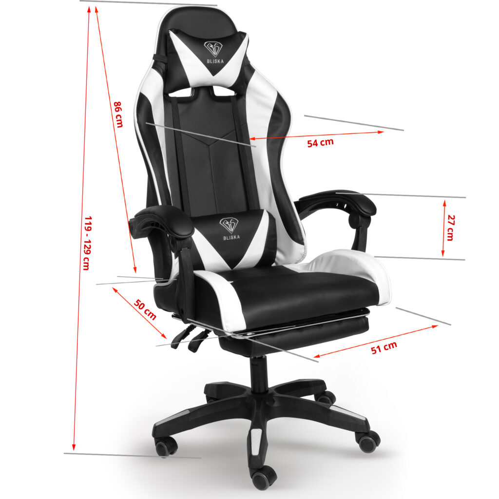 Габарити 84 × 32 × 64,5 см Це крісло, що обертається в спортивному дизайні, зі шкіряною обробкою підходить як в якості ігрового, так і в якості зручного крісла для домашнього офісу. Це офісне крісло має гнучкі підлокітники незвичайного дизайну. Спинку крісла можна плавно регулювати. Вбудована висувна підставка для ніг забезпечує найзручніше положення для розслаблення. Зручне крісло, що обертається, можна регулювати по висоті, а так само можна регулювати нахил спинки.