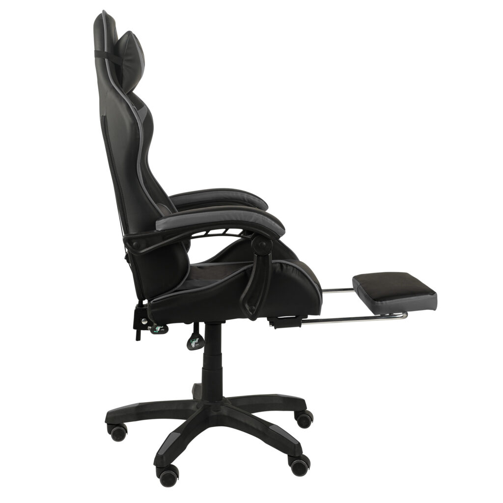 Це крісло, що обертається в спортивному дизайні, зі шкіряною обробкою підходить і як ігрове, і як зручне крісло для домашнього офісу. Це офісне крісло має гнучкі підлокітники незвичайного дизайну. Спинку крісла можна плавно регулювати. Вбудована висувна підставка для ніг забезпечує найзручніше положення для розслаблення.